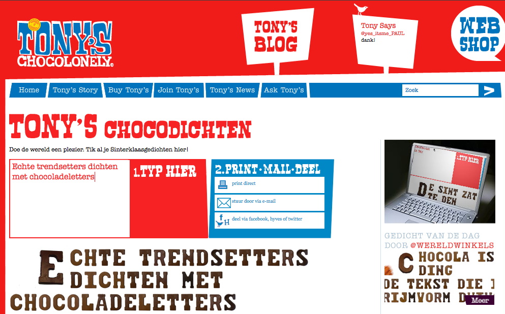 Tony’s Chocolonely dichten met echte chocoladeletters! Ism buro RuSt